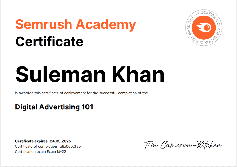 Over the years, Suleman Khan earned certifications from leading platforms, proving my expertise and dedication to delivering value: